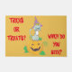 Our cute Halloween Cat in his wizards hat asking Trick or Treat Which do you seek on this awesome door mat. You can change the text or click customise it to change the background colours as well if you wish.