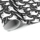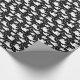Halloween wrapping paper is shown in a black and white ghosts print.