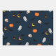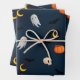 Halloween flat wrapping paper sheets set of 3, designed with, ghost, pumpkins, witch"s hat and more! Get some for your Halloween gifts!