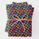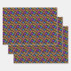 These wrapping paper sheets are shown in a festive Halloween pumpkins print design in neon colours.