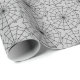 Wrapping paper shown a light grey colour with a Halloween spider web print.