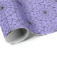 Wrapping paper shown in a purple colour with a Halloween spider web print.