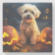 Halloween Yorkipoo With Pumpkins Scary Stone Coaster