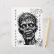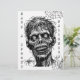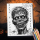 Halloween themed adult colouring page with a creepy zombie, spider webs and spider.