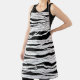 Halloween apron patterned with stripes of mummy bandages in black and white
