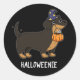 Halloweenie Funny Sausage Dog Pun Dark BG Classic Round Sticker