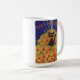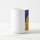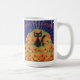 Happy Halloween Black Cat Sitting among Many Spooky Carved Pumpkins on Blue Sunburst Background Mug