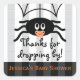 A more sweet than spooky spider sucks on an orange pacifier as he hangs from a web on a grey and white striped background. These orange and black stickers make cute halloween baby shower party favour labels. Artwork © Chrissy H. Studios, LLC. All Rights Reserved.