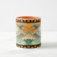 WITCH RIDING HER MAGIC GREEN HORSE, HALLOWEEN DECORATIVE COMBO MUG * Mirror Image Black /Orange Polka Dots ...Look For Matching Items Susan Brack Design