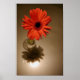 Vivid orange red gerbera daisy spotlit from above to reveal a haloed flower silhouette.