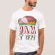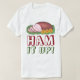 Tee shirt features an original marker illustration of a glazed holiday ham on a platter with pineapples. HAM IT UP is printed underneath in a fun burgundy and green font, with MERRY CHRISTMAS on the back. Great for an ugly sweater party!