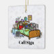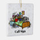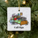 This is a fun ornament that features a Ham Radio Operator whose bedroom is his shack. A very comfy shack at that. He's in bed surrounded by all his equipment, plus some coffee to provide caffeine to say up all night. He could be DXing, trying to get some contacts for WAS or WAC. In a contest? He's very committed! On the front, personalise this with his call sign. On the back, personalise it with his name and the year. Or put whatever you want on the back. Due to the shape of the design, I'm only allowing this on SQUARE ornaments. Designed by Sheila Cicchi, Brownielocks.com. All Rights Reserved.