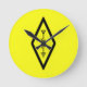 This HAM Operator Symbol Wall Clock showcases the International Amateur Emblem — the iconic black antenna and coil inside a bright yellow diamond.