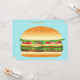 This barbecue invitation card features a delicious cartoon illustration of a hamburger. The burger is made of meat, green lettuce, red tomatoes, onion, slice of cheese and a few pickles. The bun looks freshly baked and it has some sesame seeds on top of it. On the other side there are customisable text areas for your event information.