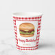 Hamburger Food On Red Gingham Happy Birthday Paper Cups
