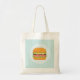 A tote bag with an illustration of a simple hamburger. Lettuce tomato and beef patty. Simple and delicious.