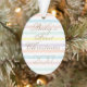 HAMbWG - Egg shaped Ornament - Baby's First Christmas - Pastel Stripes - There is a beautiful multi-coloured stripe on the front of this ornament, with the words "Merry Christmas" and a text box for the year and a name. All pictures and words can be replaced. You can download your favourite Christmas photo to the back and personalise with your name!