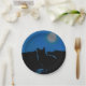 HAMbyWhiteGlove - Paper Plate - This design features a black and blue image of a cat, at night with the moon overhead. This makes a great halloween table setting - matching coordinates including confetti, are also available. (r2)