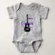 HAMbyWhiteGlove designed tee shirt with black guitar graphic and templates that you can add your name to, or leave the cutie pie things that we wrote, "Guitar," "Rock on" "sing," "dance," "smile," "hug," "play," and "shine," guitar," on it! Very fun! Shown on a dark grey striped jersey, for your guitar playing baby!