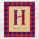 Handsome design celebrating your Scottish heritage, features monogram letter H in Clan Hamilton tartan plaid with matching background and customisable text