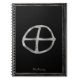 Planet Earth hammered silver stylised solar system symbol in a fine hand drawn silver double line frame.  This notebook or journal or writing pad has a title of The Journey, which can be changed to personalise your own story.