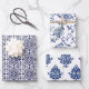 Hamptons inspired gift wrap collection featuring three different navy blue and white patterned wrapping papers of moroccan tiles, damask and chinoiserie styles that are perfect for your next Hamptons wedding