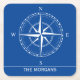 Hamptons Blue and White Ships Compass Nautical Square Paper Coaster