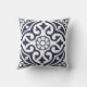 Elegant navy blue and white Hamptons style cushion with a Moroccan tile print front and back