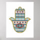 HAMSA Hand of Fatima symbol charm, tribal Aztec pattern.