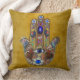 Hamsa Hearts Flowers Opal Art on Gold Cushion