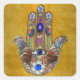 Hamsa Hearts Flowers Opal Art on Gold Square Sticker