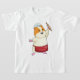 100% cotton so perfect for summer, It is a nicely designed t-shirt, the fabric is soft and the seams finished well, the body of the t shirt has no side seams. I bought a medium size for my two grandsons, aged 9 and 8 it will be slightly big on them but I would rather that than too small