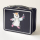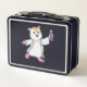 This is a standard metal lunchbox that appears to work just fine. We designed this box ourselves with an uploaded photo and custom text on the front and back. It looks absolutely beautiful except the front of the lunchbox is not centered like it shows in the photo. The print borders don't align with the inset flat part of the box where the preview photo online showed it perfectly centered in there. The back looks nice and centered though.