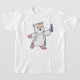 100% cotton so perfect for summer, It is a nicely designed t-shirt, the fabric is soft and the seams finished well, the body of the t shirt has no side seams. I bought a medium size for my two grandsons, aged 9 and 8 it will be slightly big on them but I would rather that than too small