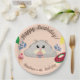 Serve up birthday fun with the Hamster Bday Pool Party Paper Plates! These playful plates feature a lounging liquid hamster enjoying a cupcake, surrounded by colourful pool party elements like balloons, a watermelon floatie, ice cream cone, lemonade, and splashes of water—all set against a warm and festive sandy-coloured background. The top of the design reads "Happy Birthday", and there’s space below the hamster to personalise with the birthday child’s name and age. Perfect for summer celebrations, these plates make every bite a splash of fun!