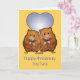 This card is perfect for a favorite married couple. The two little animals and the large heart tell the recipients that they are a beloved pair. It is refreshing to see an anniversary card in colors other than red. The brown animal fur, the tan background, and the large pale blue heart make the card's design stand out.