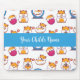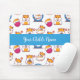 This cute mouse pad has a background of several hamsters playing and eating. Colour scheme is blue and pink
