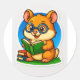 A vibrant, glossy round sticker featuring an adorable hamster reading a book on a cozy stack of books. Bright, candy‑colored, and full of charm — perfect for book lovers, students, planners, journals, laptops, and anyone who loves cute animals and cozy vibes.