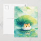 Hamster Under Green Leaf Umbrella on Pond Postcard