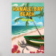 Hanalei Bay Beach beach Oahu Hawaii vacation poster. Hanalei Bay Beach Cartoon vacation poster.