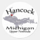 A Hancock Michigan Upper Peninsula map design on a sticker.