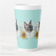 Hand drawing funny cute thai cat with flowers latte mug