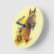 Hand drawing horse with sunflowers throw pillow round clock