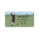 Hand drawn and painted golfer in vintage attire singing a club towards a golf ball, can be personalised with your own name or another name to create a unique golfing gift