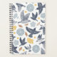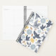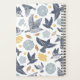 A yearly weekly planner notebook featuring original hand-drawn digital artwork of starling birds and intricate florals in a rich navy blue, soft sky blue, and warm gold and yellow colour scheme. The cover design is detailed and patterned in a style that feels both artistic and elegant, printed on a laminated cover with a polished finish that holds up to daily use. Available in multiple sizes and in softcover or hardcover binding, with a wire-o spiral spine for flat lay ease. Interior pages include a monthly overview and weekly planning spreads across 12 months and 60 pages, printed on smooth 60lb text paper. This planner is designed to keep you organised through the full year without sacrificing beauty on your desk. It makes a thoughtful and distinctive gift for women who appreciate art, nature, and stationery. An excellent choice for a mothers day gift, a back to school planner, a christmas or birthday gift for her, a teacher appreciation gift, a bridesmaid gift, a gift for the bird lover, a nature lover, or anyone who believes their planner should be as beautiful as the life they are planning. Customers may personalise the cover by adding a name, monogram, or custom text directly through Zazzle.