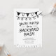 This playful black and white invitation features hand-drawn lettering and festive doodles like string lights, flags, and fireworks—perfect for a casual backyard bash. With its bold, informal style, it's ideal for summer parties, birthday cookouts, or family gatherings. Personalise it with your event details for a fun, no-fuss celebration invite.