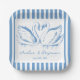 hand drawn Blue Couple Swan Whimsical Wedding Paper Plate