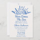 Hand Drawn Blue Here Comes The Son Sun Baby Shower Invitation