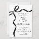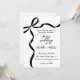 A hand-drawn bow sits in the top left corner, with flowing ribbon details extending across the top and down the left side of the card for a delicate, refined accent. The wedding text is placed in the bottom right, creating a balanced layout with plenty of open space and a calm, sophisticated feel.