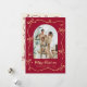 Modern Whimsical Gold Coquette Bows 2 Photo Merry Christmas Holiday Card in Burgundy Red. Celebrate the season in style with this cute two-photo Christmas card. The front showcases a bold, modern hand-lettered “Merry Christmas” script, framed by a delicate illustrated faux gold coquette bow ribbon border, accented with lots of tiny hand-drawn bows on a burgundy red background, at the center a nice arch shaped family photo template. The back includes space for your personalized holiday message and an additional photo, finished with a coordinating ribbon + bows and a sweet little heart doodle. A festive and timeless way to share love and warm wishes with family and friends this Christmas season.